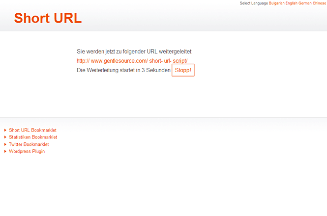 Eine weitere Neuerung sind die verschiedenen Weiterleitungsarten. Zu dem 301 HTTP Redirect kommen jetzt ein Frame-Modus und ein Meta-Refresh-Modus. Letzterer zeigt einige Statistiken, die lange URL und einen Stop-Schalter an.