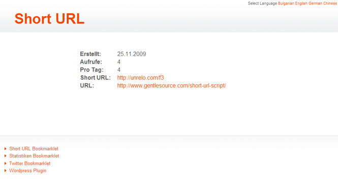 - Für jede Kurz-URL können öffentliche Statistiken angezeigt werden (Zahl der Aufrufe, Datum der Erstellung)